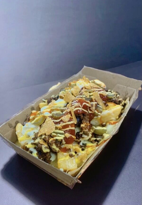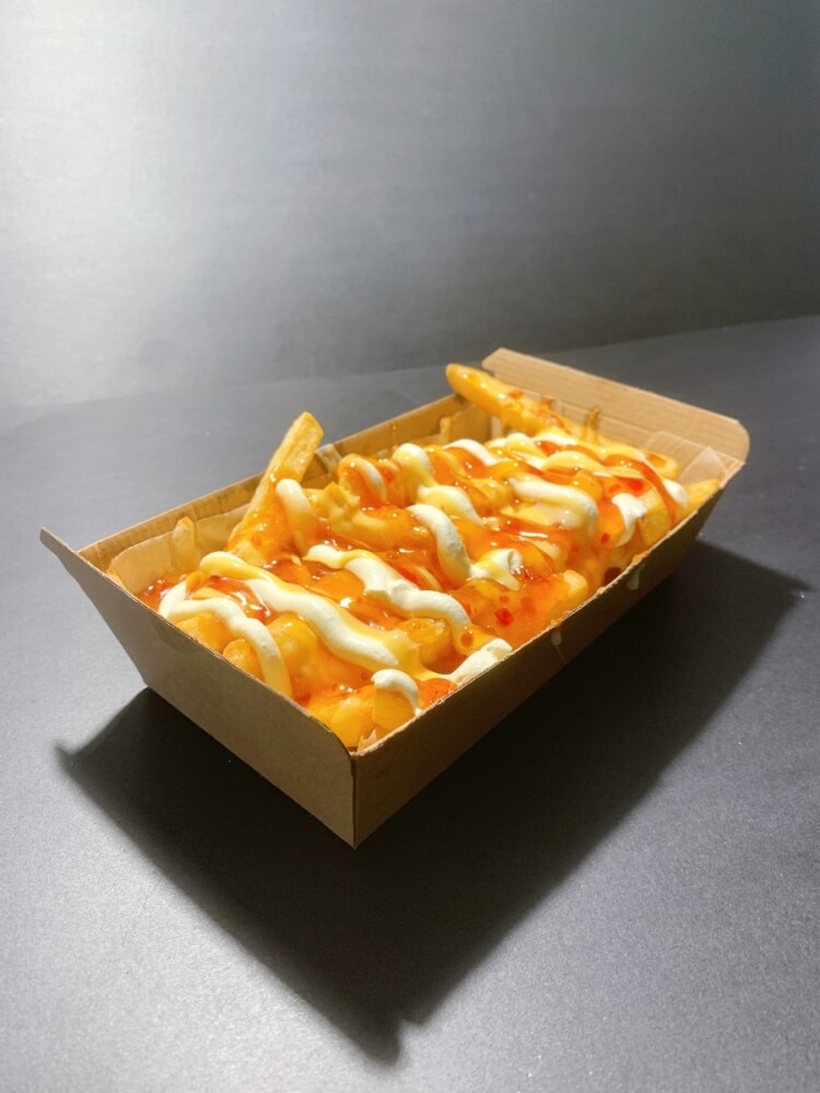 Fries, Shredded Cheese, Sour Cream, Sweet Chilli, Cheese Sauce