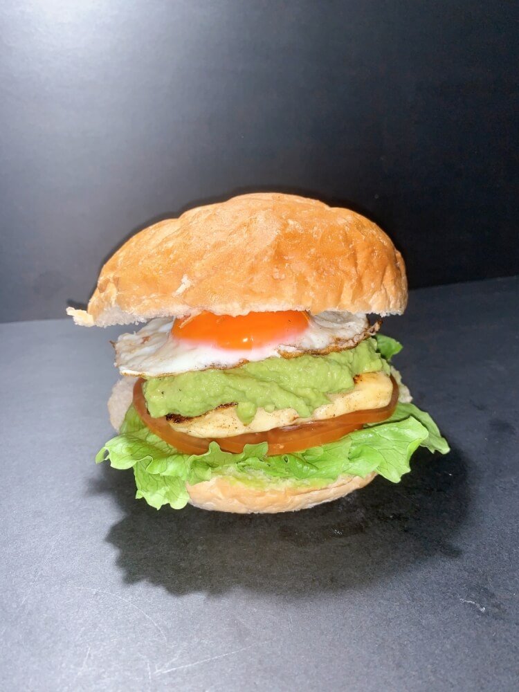 Grilled Halloumi, Lettuce, Tomato, Avocado, Fried Egg