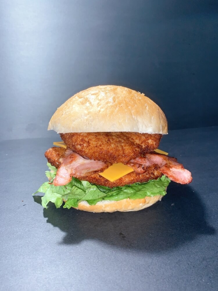 Chicken Schnitzel, American Cheese, Bacon, Lettuce