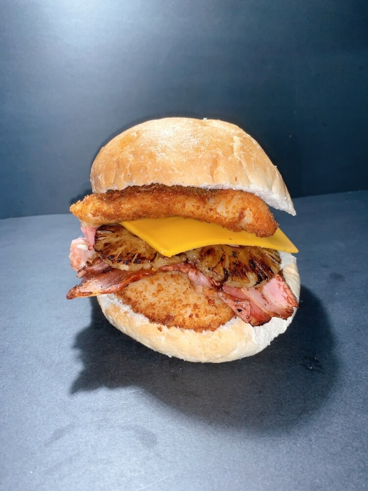 Chicken Schnitzel, Pineapple, American Cheese, Bacon
